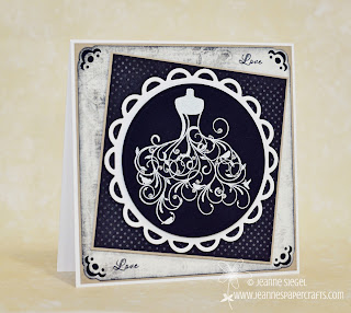 For my project today, I finally got to play with some of the newest releases from Jaded Blossom! This set is called Wedding Wishes and I just LOVE the main image on it, so I naturally had to use it first. :) I decided to heat emboss the image using the VersaMark Dazzle pad and Stampin' Up white embossing powder. The Stampin' Up powder is my all time favorite embossing powder because it is much finer than other brands.